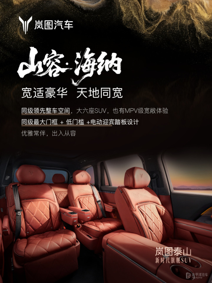 近日,岚图汽车公布了旗下岚图泰山(查成交价|车型详解)的车内空间信息。作为了解,新车将搭载最新版鸿蒙座舱语音大模型、AI云舒座椅、32扬声器音响系统等豪华配置。岚图泰山已于9月26日开启预订,将于本月正式上市。